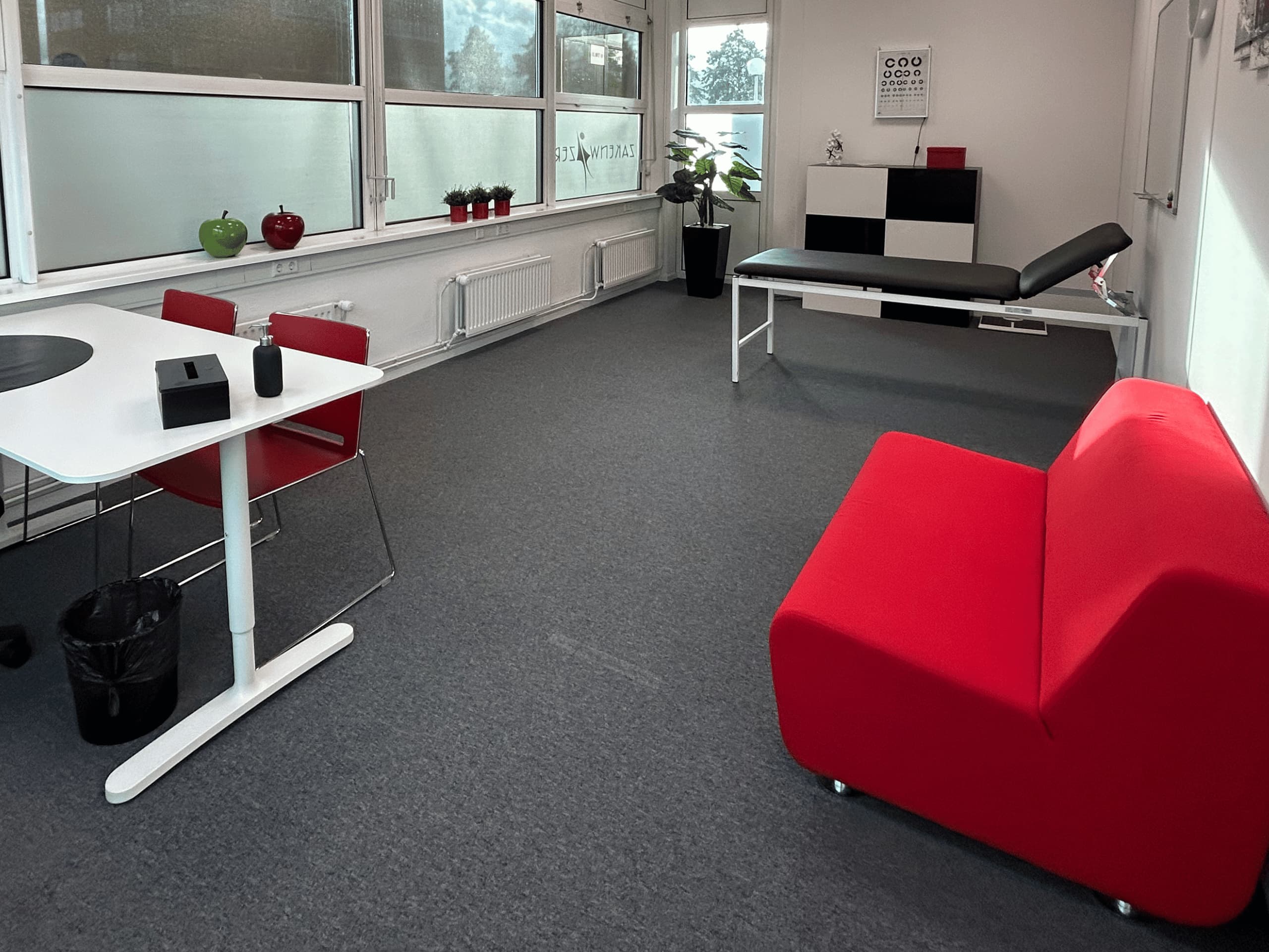 Voor spreekuren, consulten, keuringen en periodiek, medische onderzoeken hebben we professioneel ingerichte spreekruimtes op de begane grond. Naast een bureau en 2 stoelen voor jouw cliënten en een whiteboard, is er een behandeltafel, visis-lichtbak en personenweegschaal aanwezig. Een tweepersoonsbank maakt deze spreekkamer compleet. Gratis wifi, koffie, thee en (bruis)water.